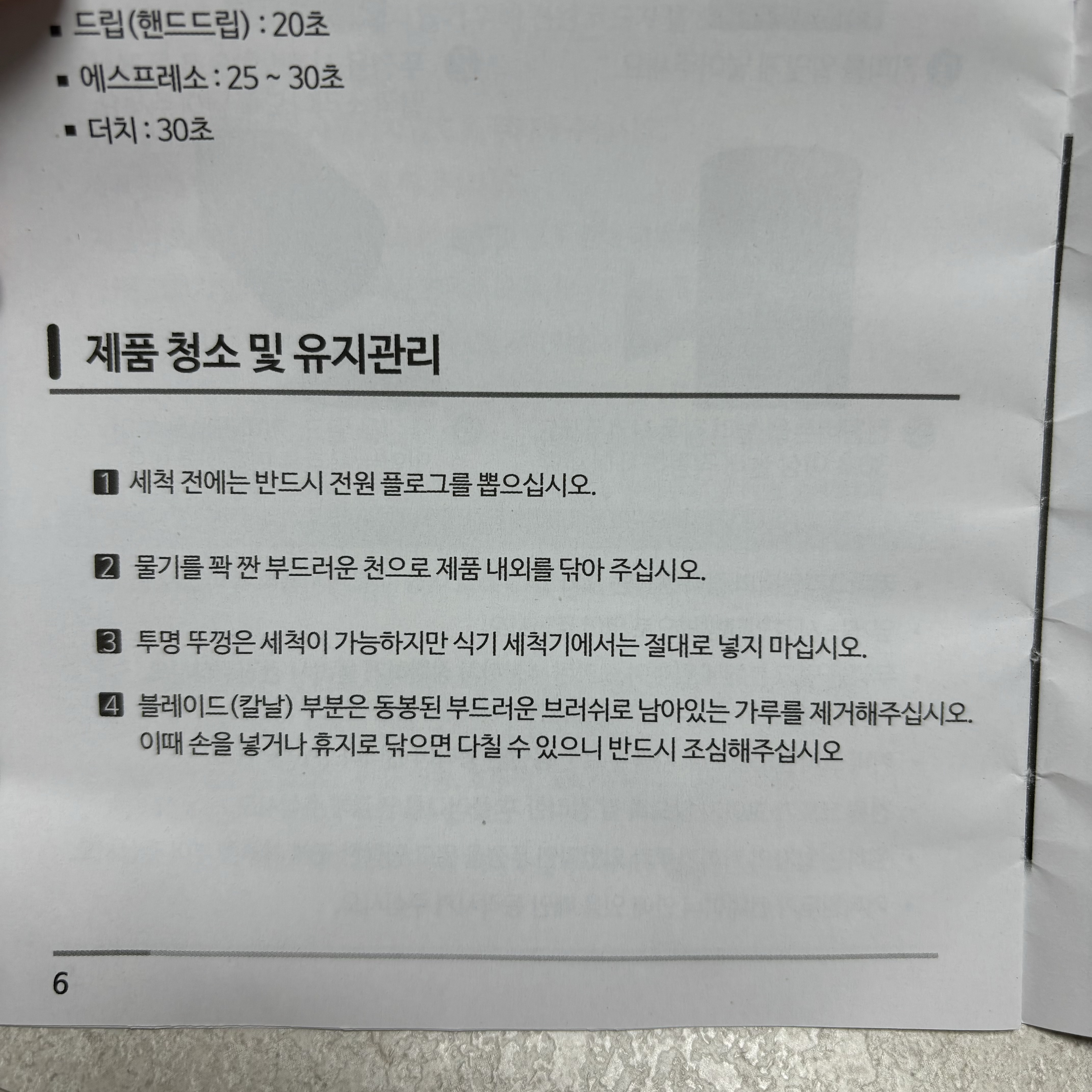 - 드립(핸드드립) : 20초